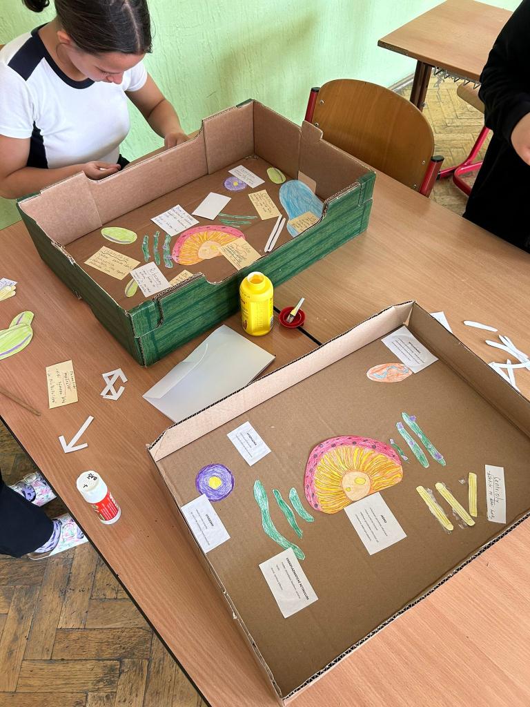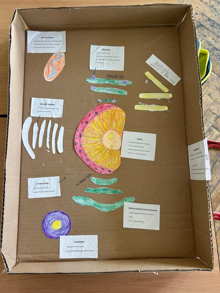 Závěrem proběhla montáž, kdy se jednotlivé organely usadily do připravených kartonových "buněk", doplněné popisky. Vznikly tak přehledné a názorné modely, které dokonale reflektují strukturu studovaných buněk.